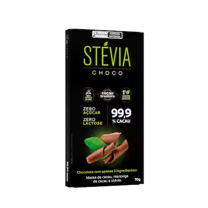 Ingredientes: Massa de cacau, manteiga de cacau e edulcorante natural Stévia. Alérgicos: Não contém glúten